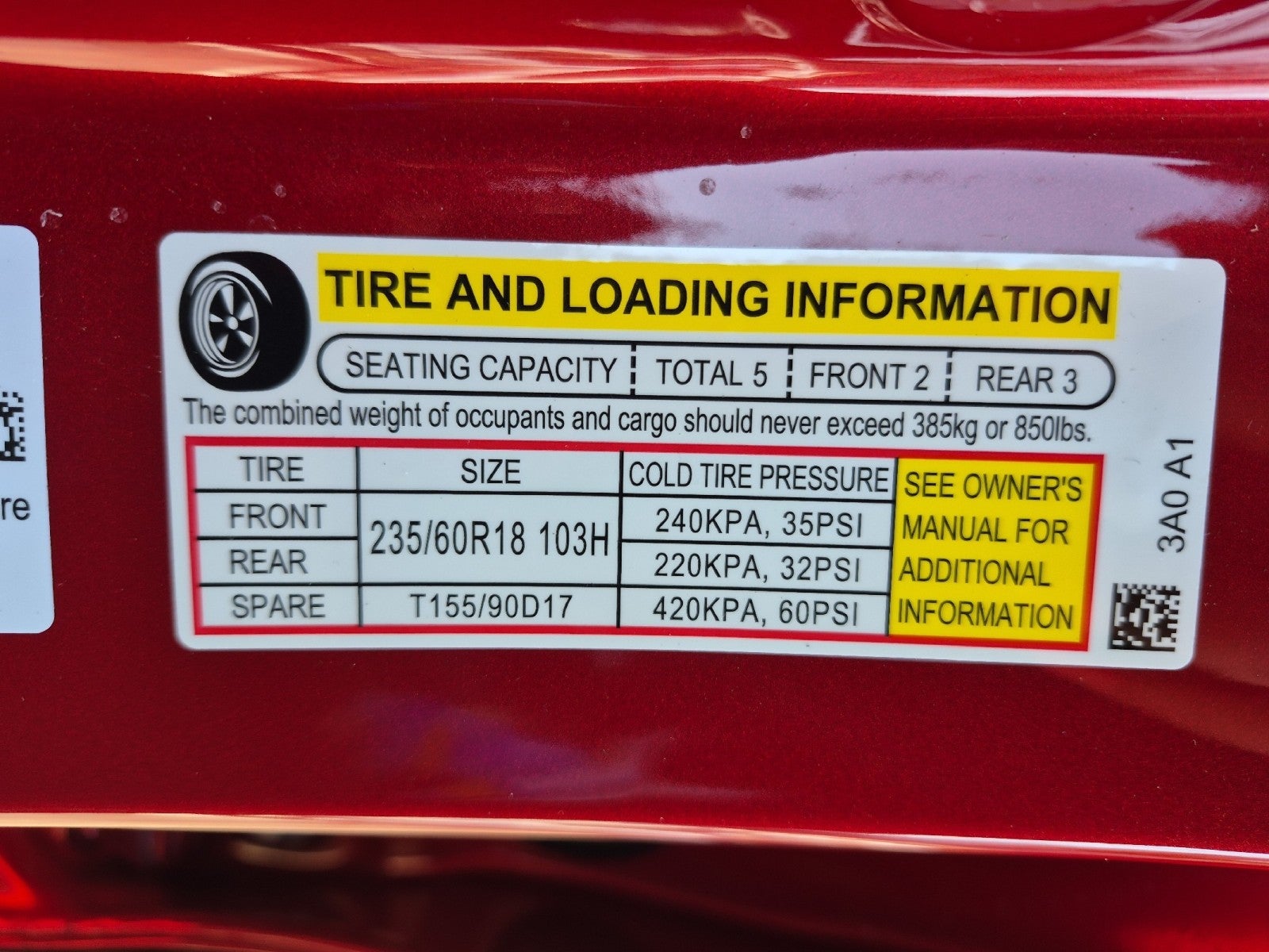 - Front Tire Size: P235/60HR18