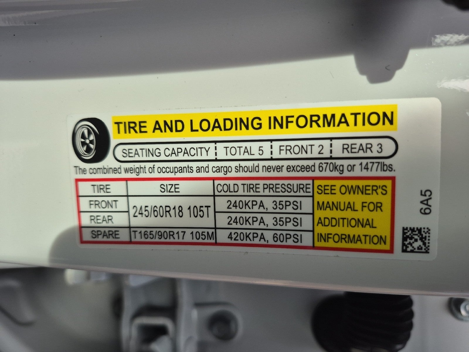 - Front Tire Size: P245/60TR18