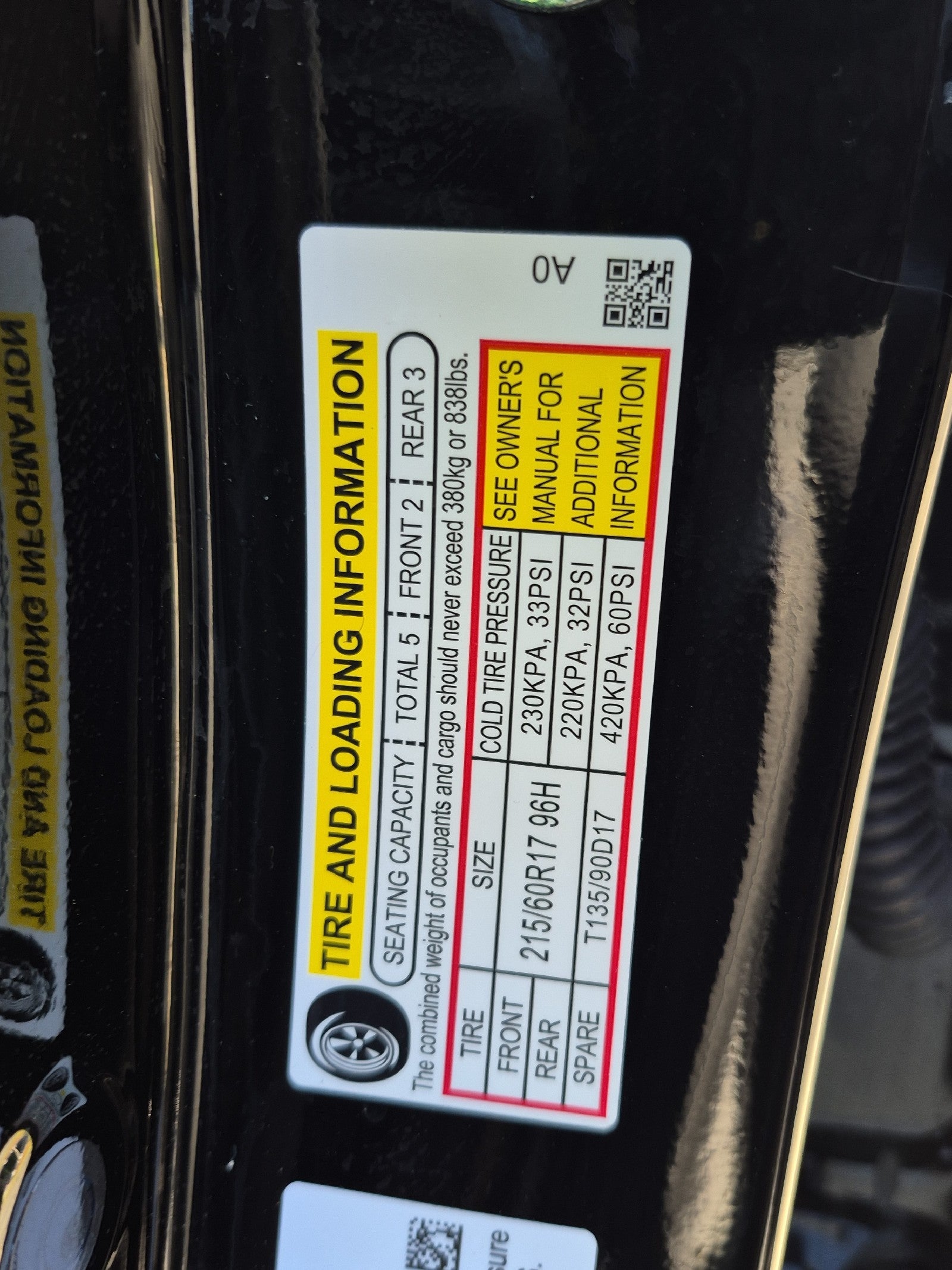 - Rear Tire Size: P215/60HR17
